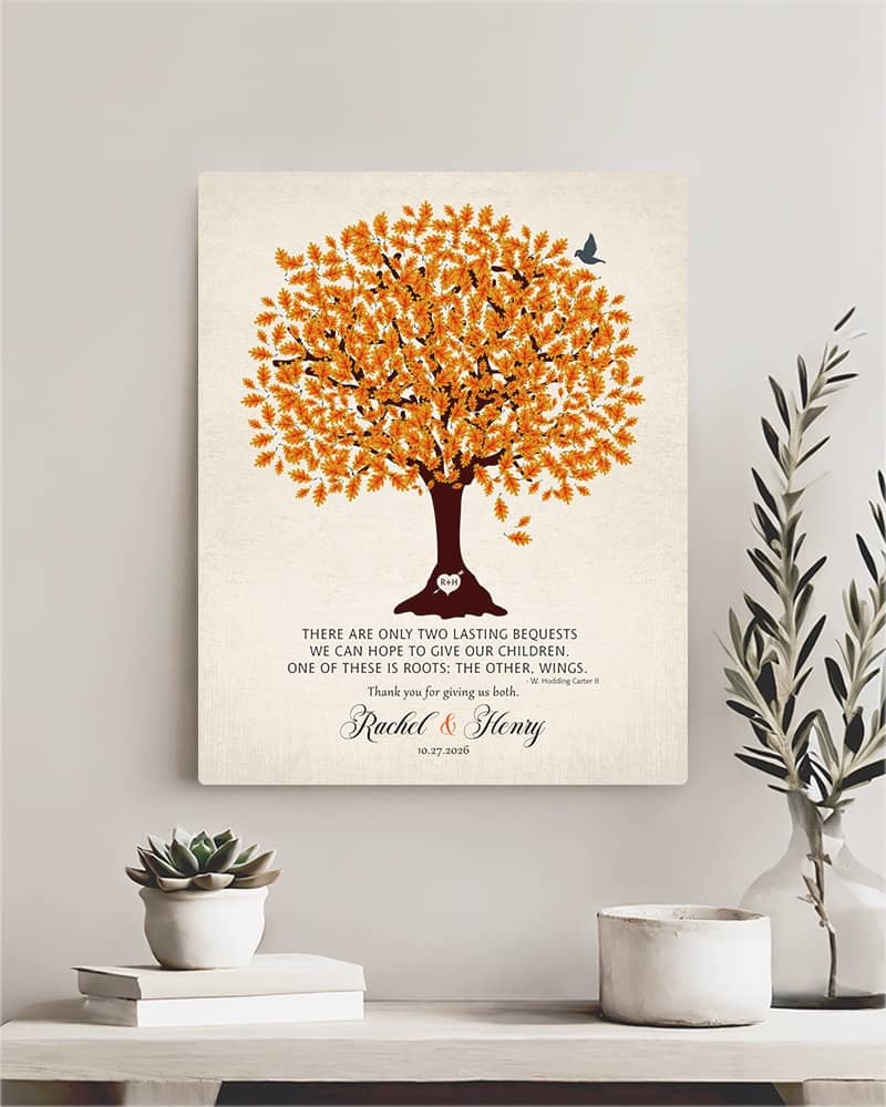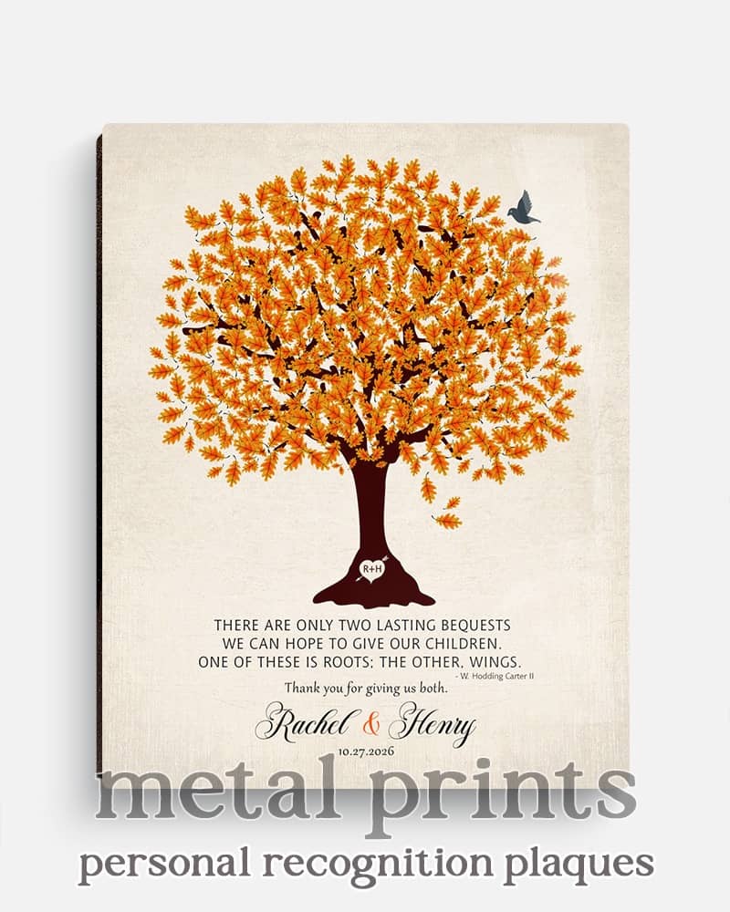 Generational 10 Year Anniversary Gift for Couples: Personalized Tree of Life Tin Plaque, Couple Love Art LT-1210